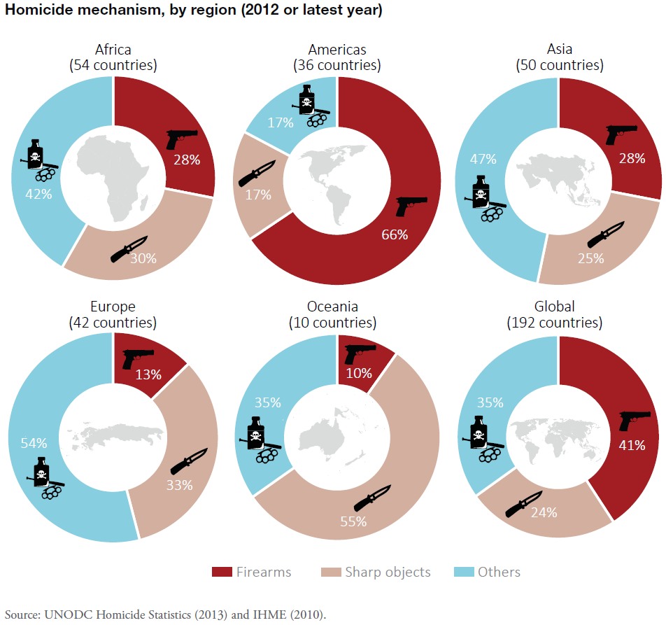 A Global Study on Homicide published by the United Nations in 2013 shows that firearms account for 4 out of 10 homicides globally. In regions of the world like the Americas where firearms are more ...